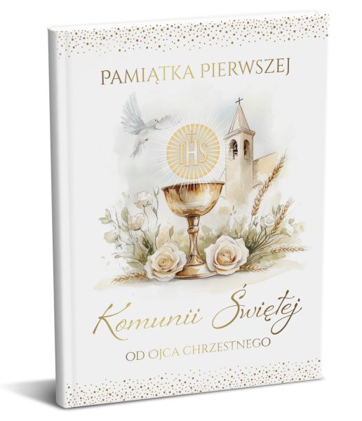 Książeczka z okazji I Komunii Świętej od Ojca Chrzestnego to wyjątkowa pamiątka jednego z najważniejszych dni w życiu dziecka. Starannie wykonana, utrzymana w subtelnej i uroczystej stylistyce, przyciąga uwagę delikatnymi ilustracjami oraz eleganckimi złotymi detalami nawiązującymi do sakramentu Eucharystii. Format A5 sprawia, że książeczka prezentuje się bardzo estetycznie, a jednocześnie jest poręczna i wygodna do przechowywania jako cenna pamiątka na długie lata.