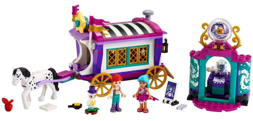 W tym wyjątkowym zestawie znajdzie wóz, namiot wróżki, dwie minilaleczki i figurki konia i sowy.