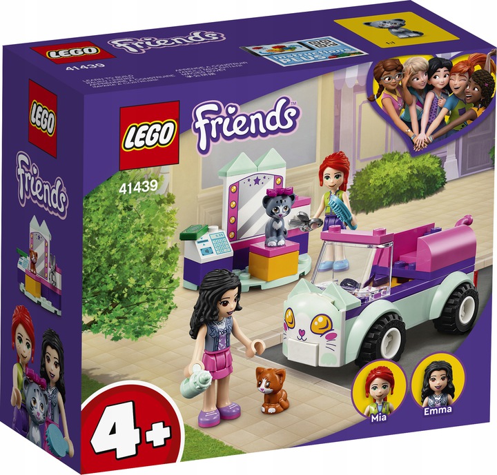 - W tym małym samochodziku wielbiciele kotów znajdą Emmę i Mię z LEGO® Friends, a także figurki dużego i małego kota. Jest tam także klocek startowy, więc można szybko zbudować model i bawić się bez końca