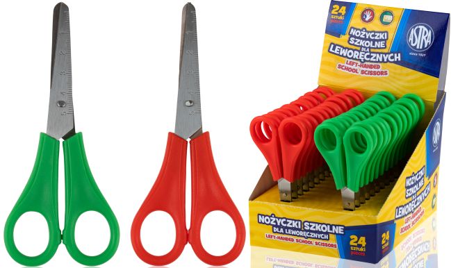 Nożyczki szkolne Astra z podziałką dla praworęcznych - display 24 sztuki
