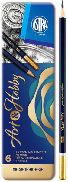 Ołówki grafitowe ASTRA Artea do szkicowania w metalowym pudełku 6szt.
