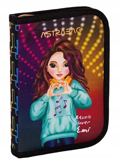 Piórnik jednokomorowy Astrabag Top Teens to absolutny hit tego sezonu. Powstał z myślą o małych fashionistkach, które uwielbiają wyróżniać się z tłumu. Jego znakami rozpoznawczymi są piękna i intensywna kolorystyka oraz duża rysunkowa grafika przedstawiająca nową ulubioną postać każdej dziewczynki - lalkę Emi.