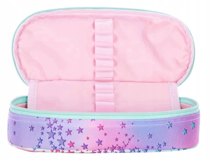 Saszetka - piórnik Head w pastelowej kolorystyce ombre to wymarzony prezent dla każdej dziewczynki. Jego front zdobi urocza grafika kotka, wypełniona tysiącem małych gwiazdek.