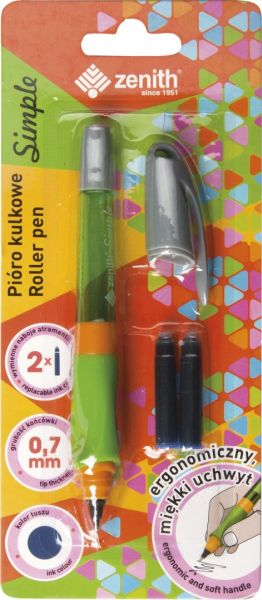 Pióro kulkowe z gumowym uchwytem ZENITH SIMPLE + 2 naboje atramentowe - 1+2 szt. blister [opakowanie=12szt]