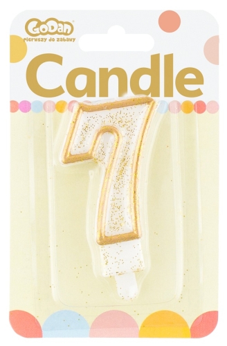 Świeczka cyferka "7", złoty kontur