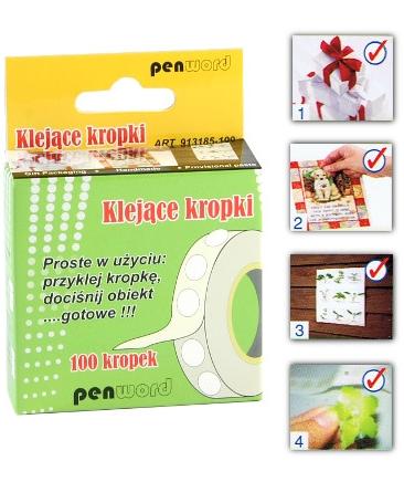 Producent: PenwordOpakowanie zawiera 100 sztuk klejących kropek, które można użyć np. do pakowania prezentów, prac introligatorskich, przyklejenia zdjęć, przyklejenia tkanin do papieru lub do wykonywania dekoracji.