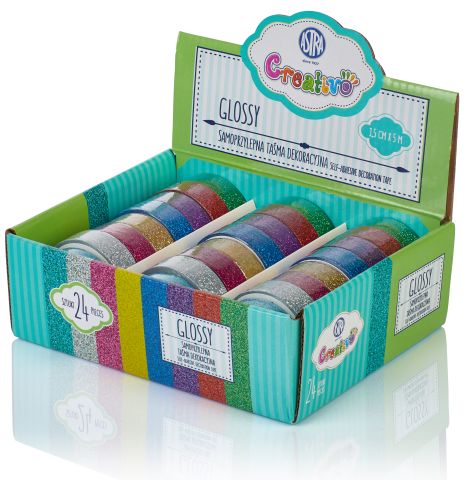 Strona główna » Oferta » Pakowanie Prezentów » Taśmy ozdobne samoprzylepne » Taśma dekoracyjna ASTRA brokatowa Glossy - display 24szt.