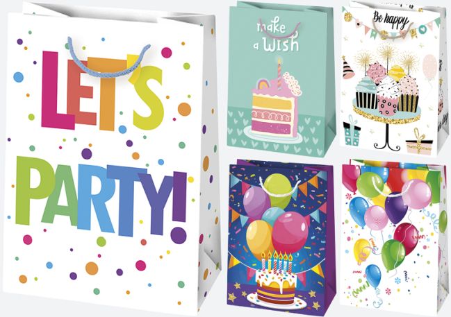 Te torby to nieodłączny element każdej urodzinowej oferty! Świetnie sprzedają się w sklepach papierniczych, z upominkami i zabawkami.