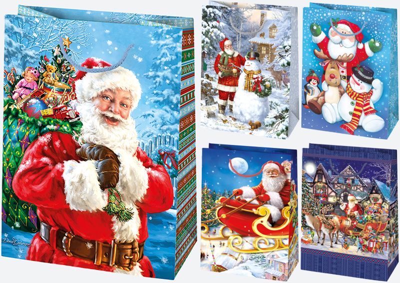 Strona główna » Oferta » Pakowanie Prezentów » Torebki Prezentowe » Torby Papierowe » Torebka Ozdobna T10 345x480x130 lakier. Gwiazdka Zestaw 20 Mikołaje a10