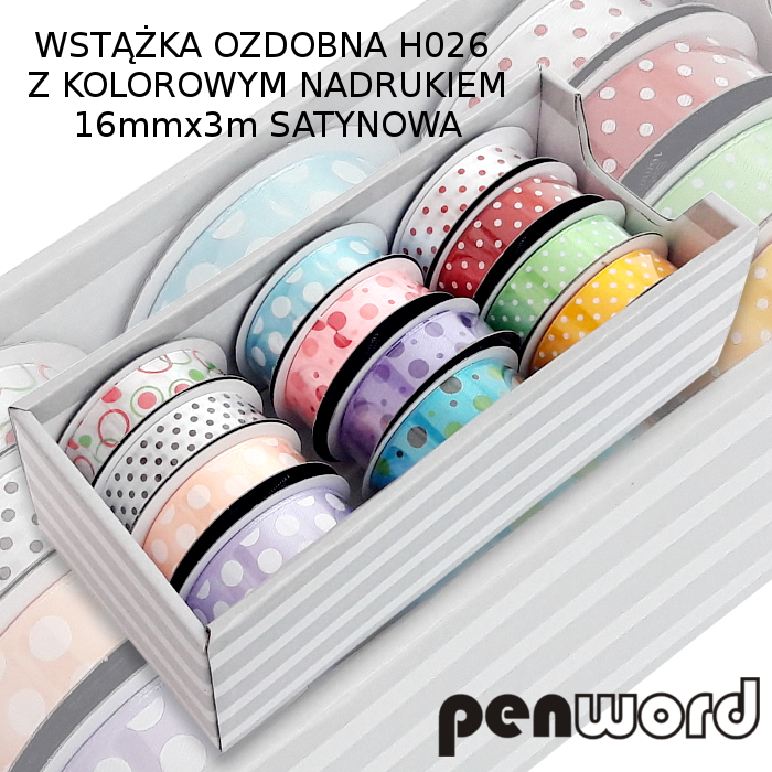 WSTĄŻKA OZDOBNA H026 Z KOLOR. NADRUKIEM 16mmx3m SATYNOWA