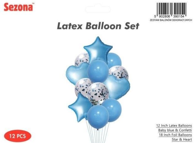 Zestaw balonów 30cm/46 cm 14 szt Baby Blue, Konfetti i Gwiazdki