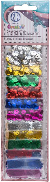 Strona główna » Oferta » Artykuły Ozdobne i Kreatywne » Cekiny, Konfetti, Zestawy » Zestawy » Zestaw do dekoracji ASTRA "Paryski Szyk" mix 12 kol. x 2g