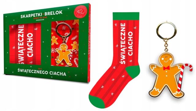 Producent: Pan DragonElegancki zestaw prezentowy pod choinkę. Skarpety świąteczne ciacho i brelok w kształcie ciastka który każdemu się przyda i każdego ucieszy ;)