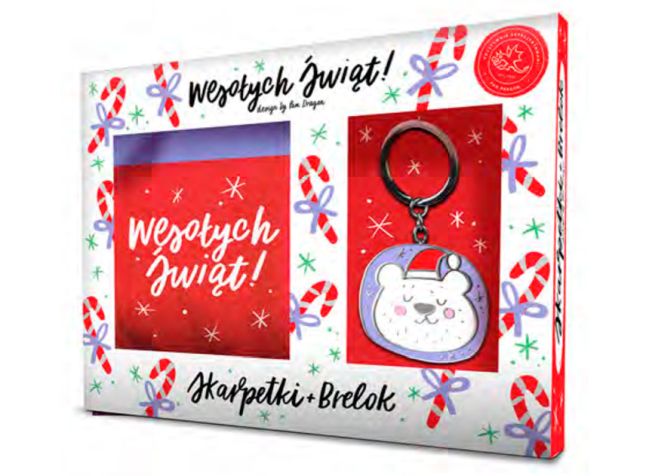 Uroczy zestaw ¶wi±teczny od PAN DRAGON to idealny pomys³ na drobny, radosny upominek dla bliskiej osoby. W zestawie znajduj± siê ciep³e, czerwone skarpetki z napisem „Weso³ych ¦wi±t!” oraz uroczy brelok z wizerunkiem ¶wi±tecznego misia w czapce Miko³aja. To po³±czenie praktycznego prezentu z nut± ¶wi±tecznej s³odyczy i humoru – doskona³e na prezent dla dzieci, m³odzie¿y i doros³ych, którzy kochaj± bo¿onarodzeniowy klimat! 🎄