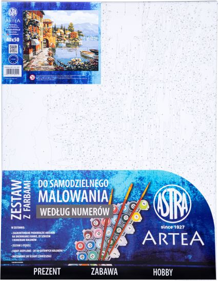 Strona główna » Oferta » Pędzle i art. Malarskie » Zestawy do malowania po numerach » Zestaw z farbami, malowanie wg. numerów, podobr. 40x50cm, Wakacje, ARTEA ASTRA