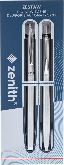 Zestaw ZENITH SILVER - Pióro wieczne + Długopis automatyczny metalowy w etui